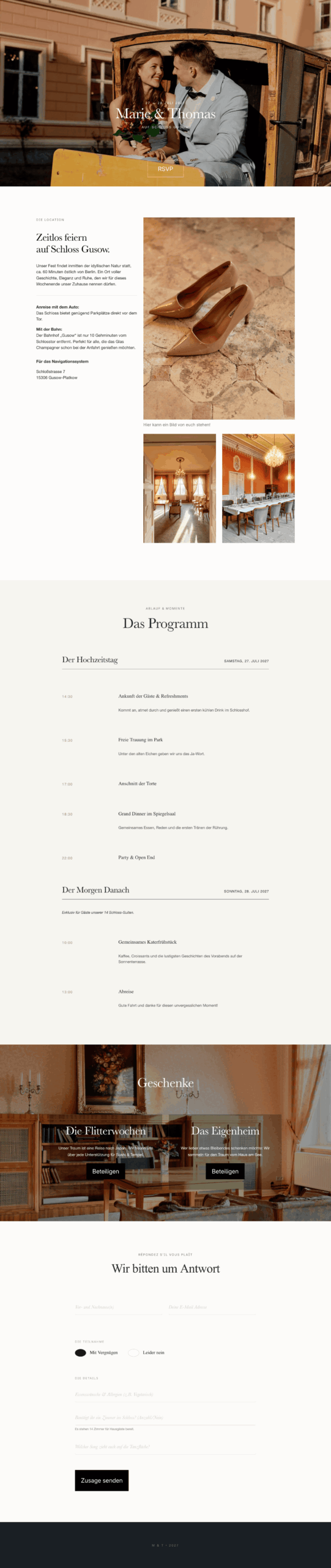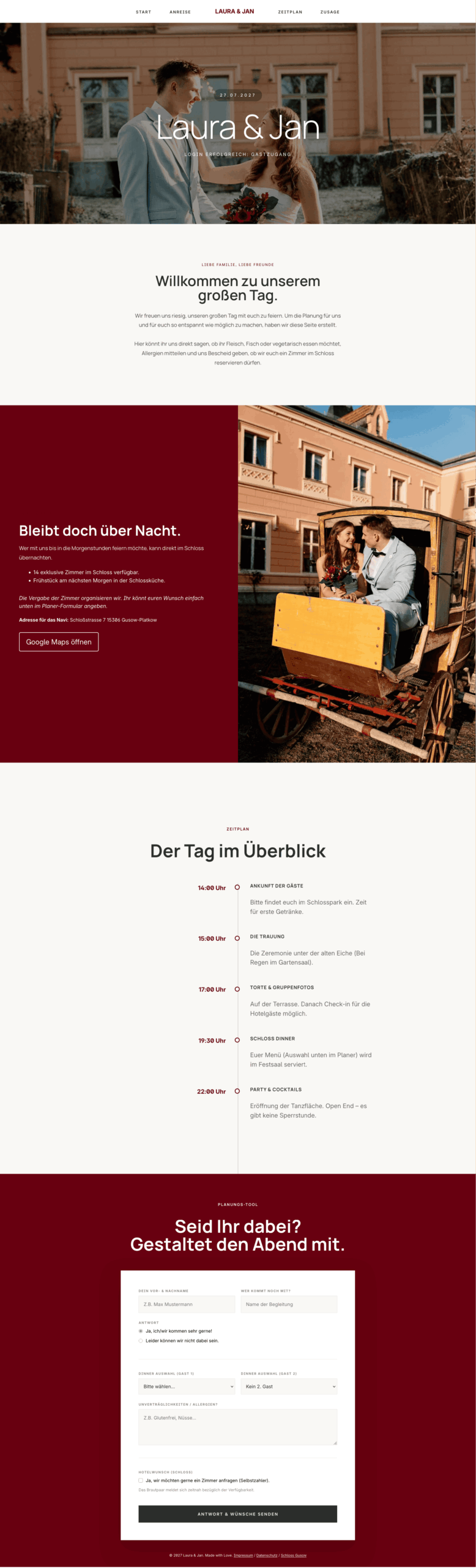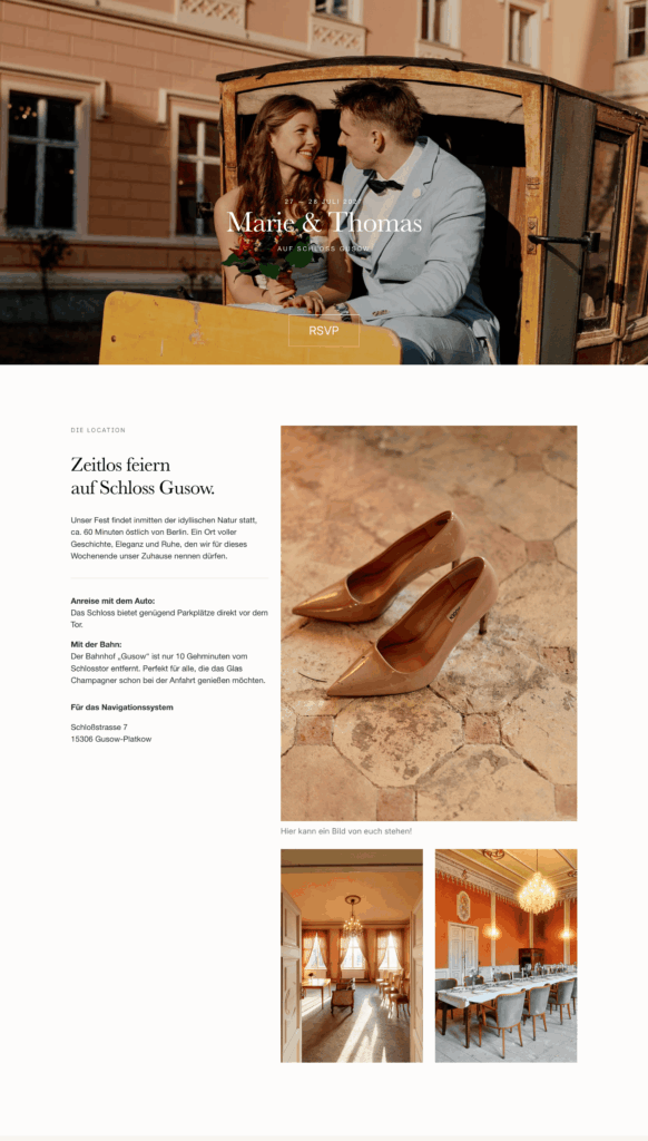 Verbindet die Romantik von Schloss Gusow mit modernster Technik. Schluss mit Excel-Listen und verlorenen Einladungskarten. Startet Eure Ehe perfekt organisiert.